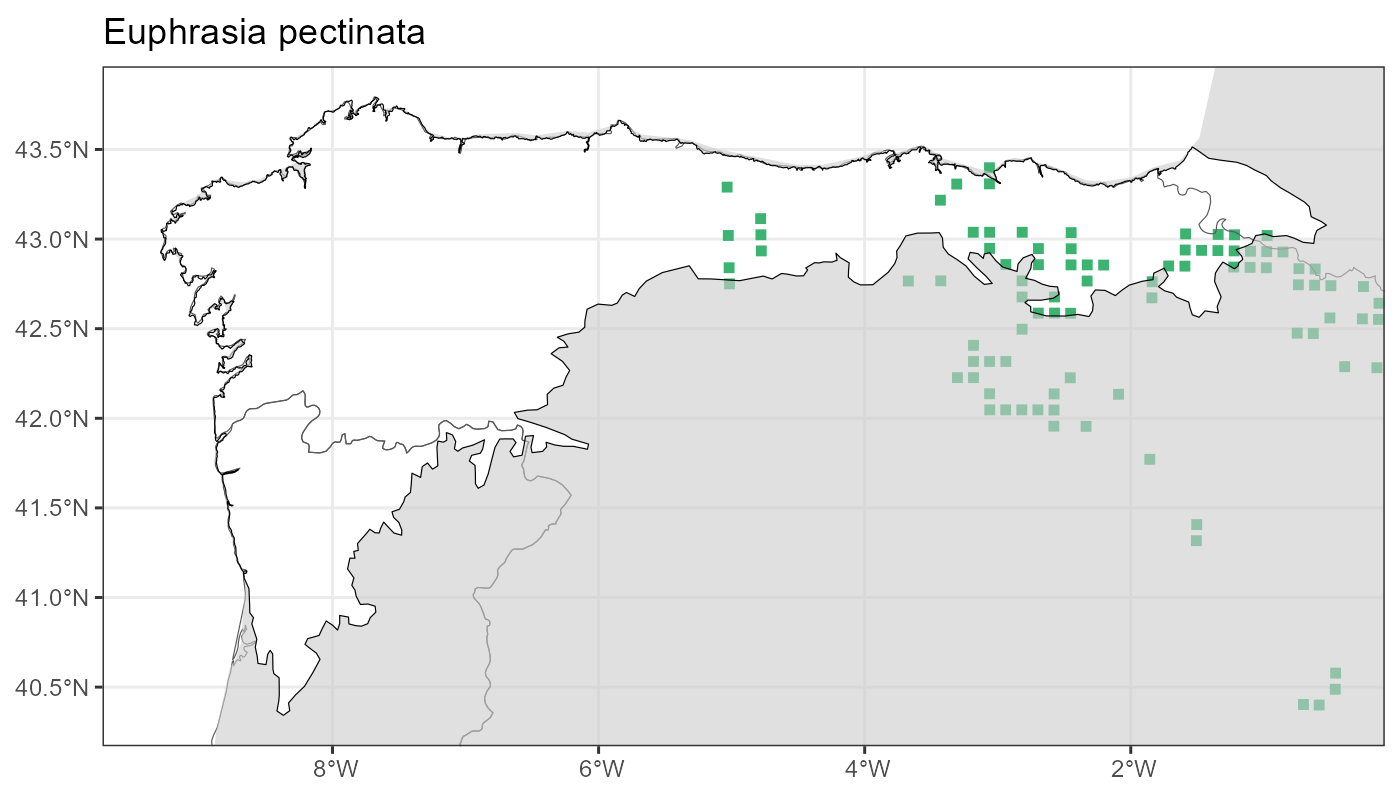 Localities (10 x 10 km) where the species has been recorded in the context of the study area. The complete distribution of the species in the Iberian Peninsula can be found in AFLIBER.