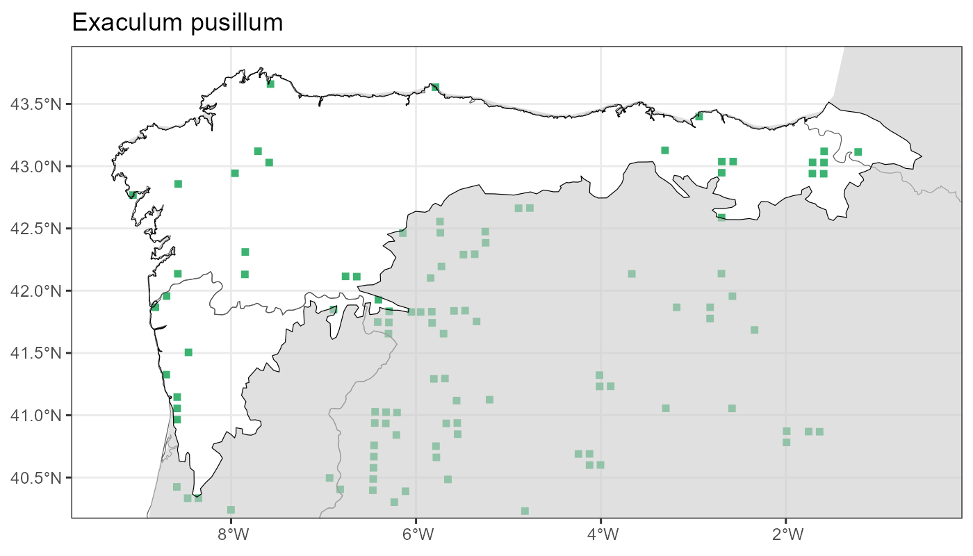 Localities (10 x 10 km) where the species has been recorded in the context of the study area. The complete distribution of the species in the Iberian Peninsula can be found in AFLIBER.