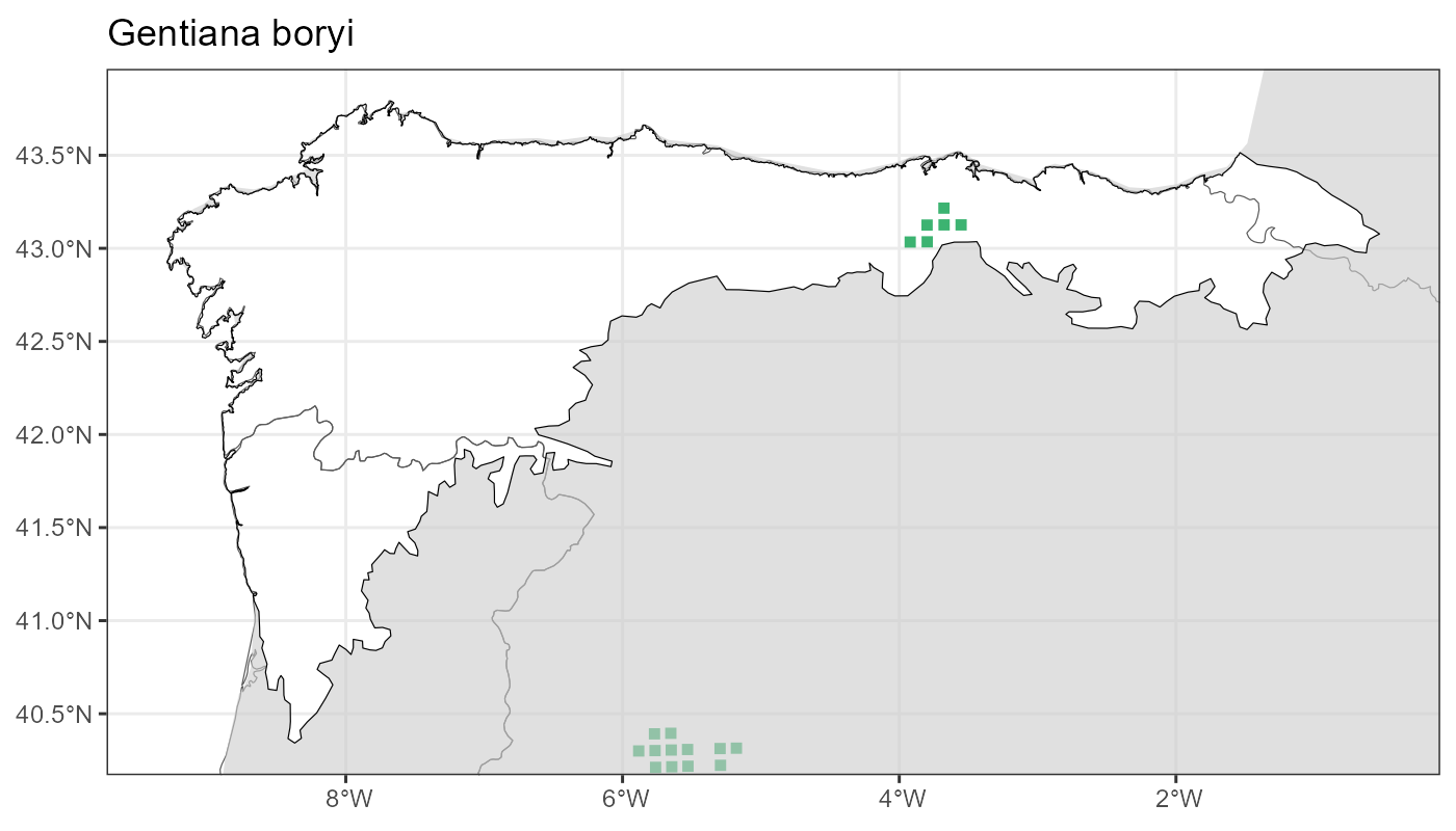 Localities (10 x 10 km) where the species has been recorded in the context of the study area. The complete distribution of the species in the Iberian Peninsula can be found in AFLIBER.