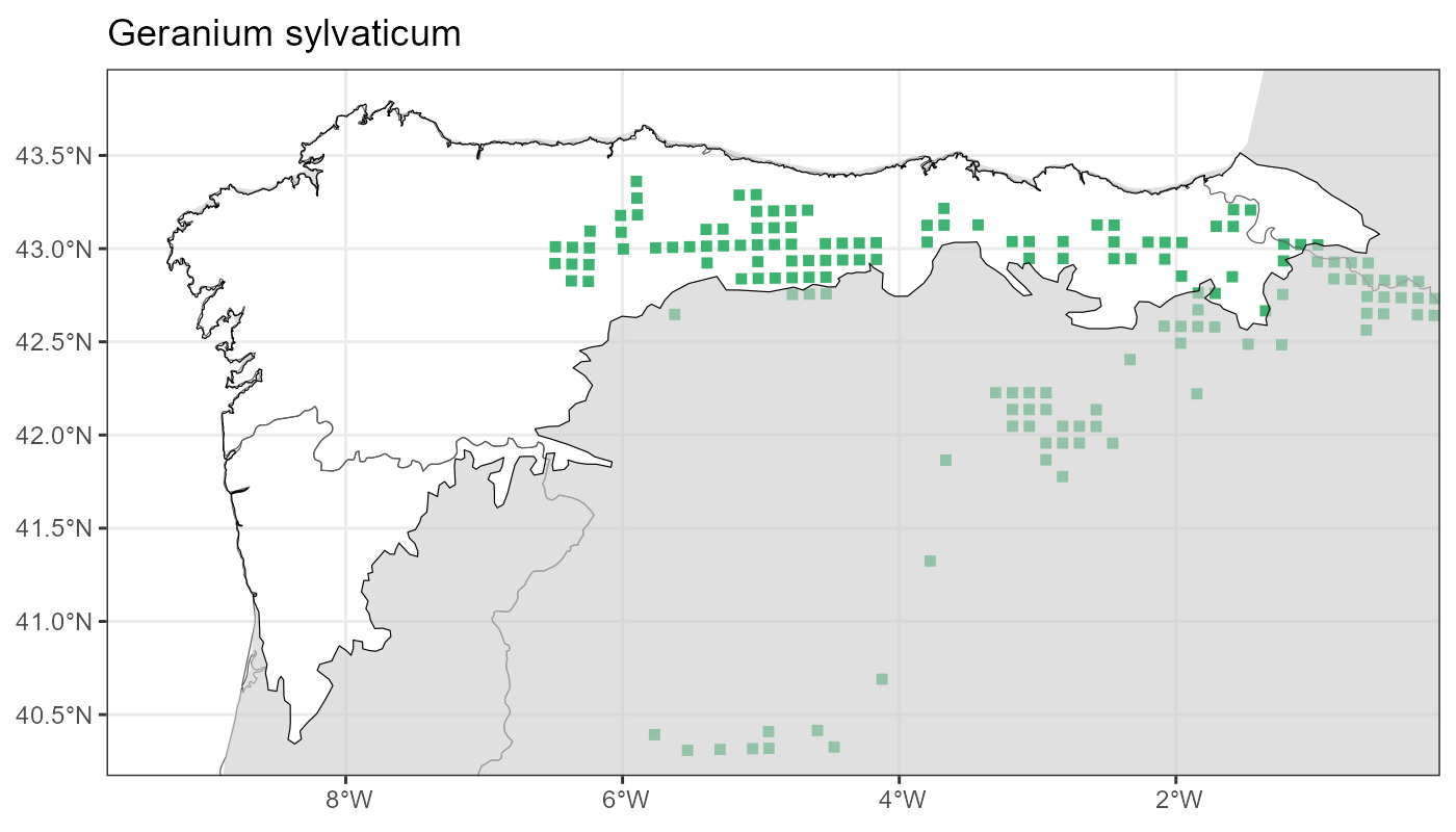 Localities (10 x 10 km) where the species has been recorded in the context of the study area. The complete distribution of the species in the Iberian Peninsula can be found in AFLIBER.
