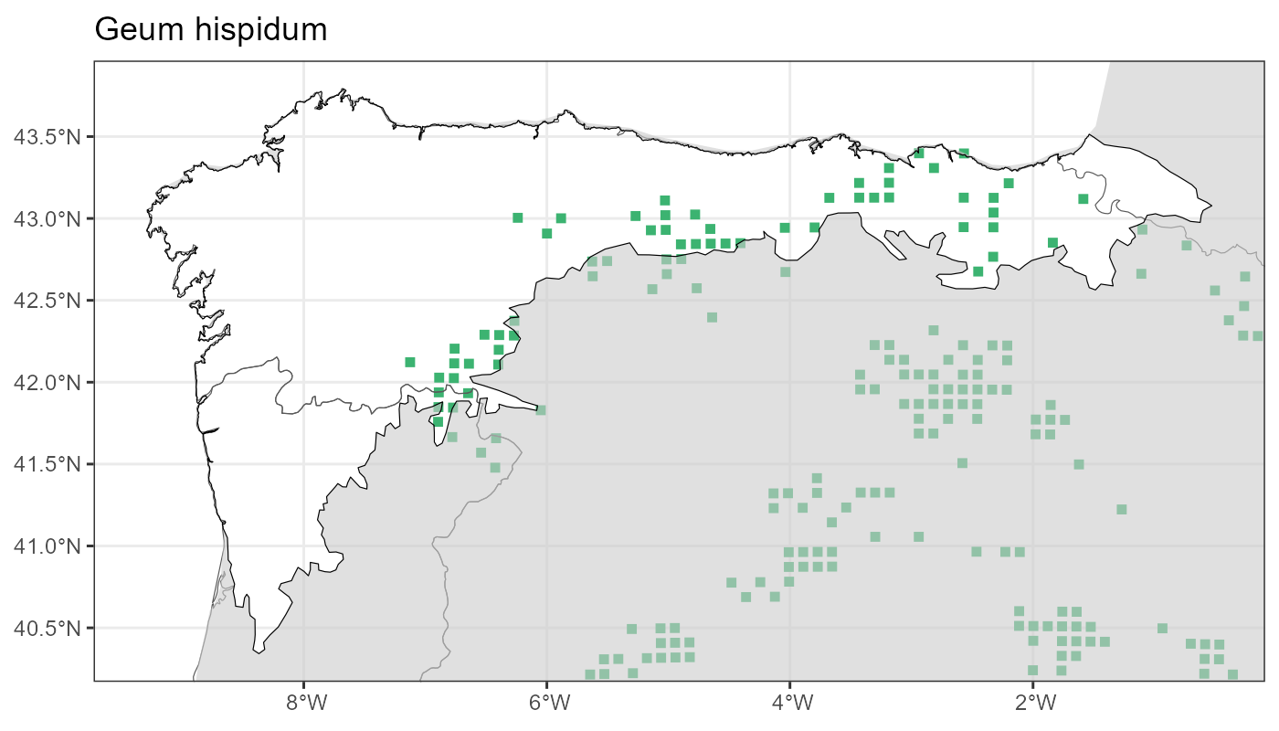 Localities (10 x 10 km) where the species has been recorded in the context of the study area. The complete distribution of the species in the Iberian Peninsula can be found in AFLIBER.