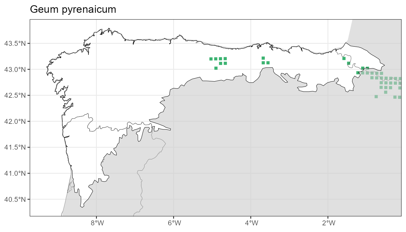 Localities (10 x 10 km) where the species has been recorded in the context of the study area. The complete distribution of the species in the Iberian Peninsula can be found in AFLIBER.