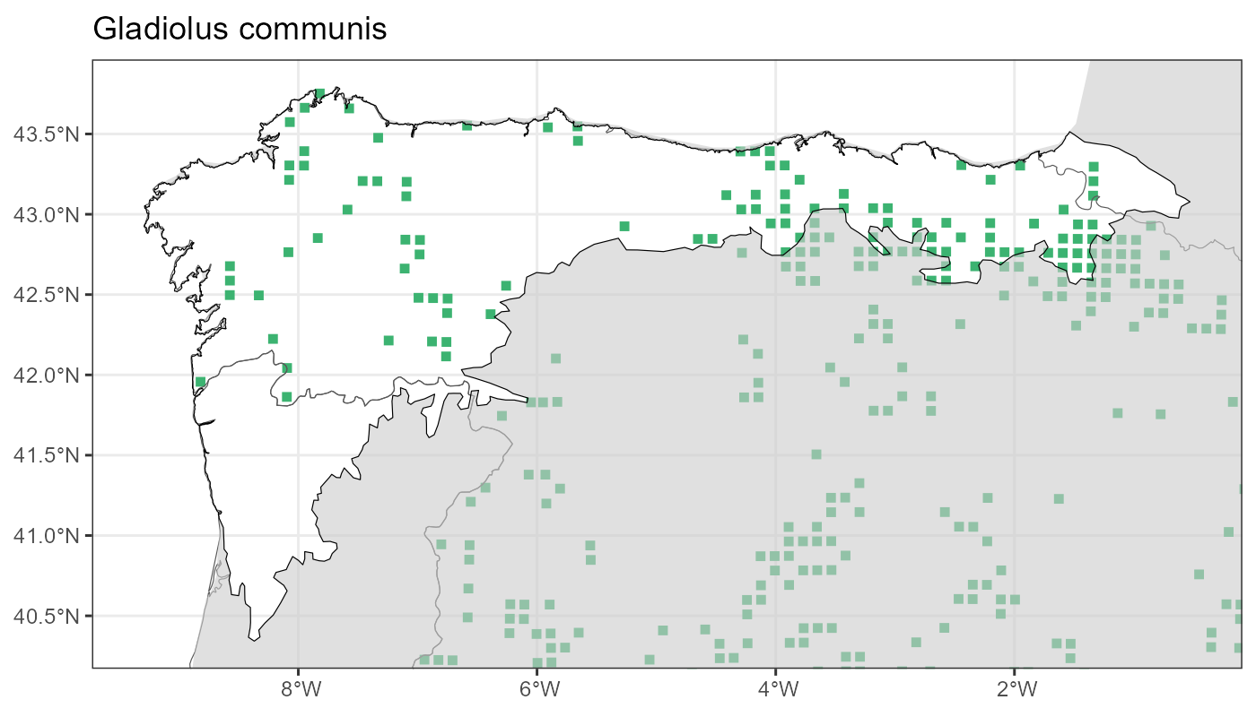 Localities (10 x 10 km) where the species has been recorded in the context of the study area. The complete distribution of the species in the Iberian Peninsula can be found in AFLIBER.