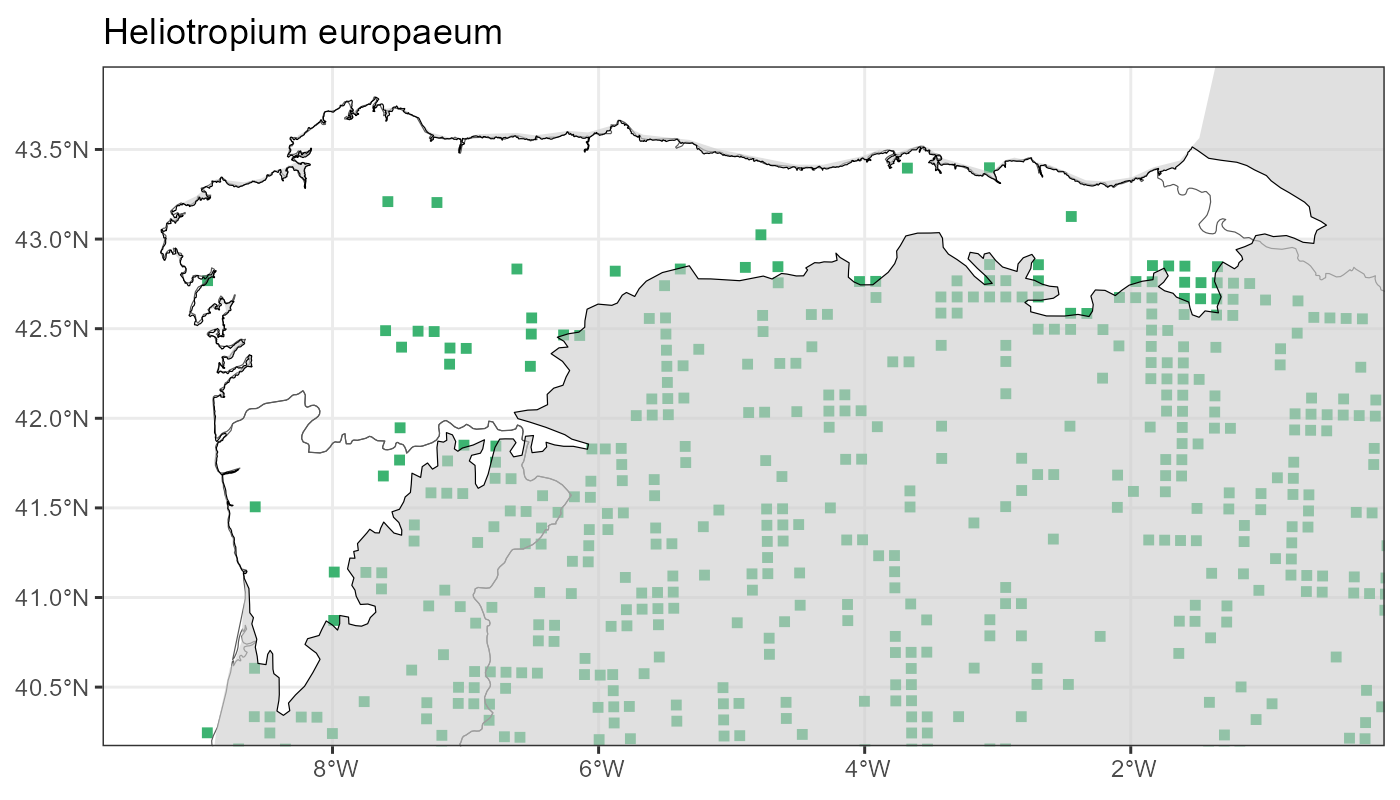 Localities (10 x 10 km) where the species has been recorded in the context of the study area. The complete distribution of the species in the Iberian Peninsula can be found in AFLIBER.
