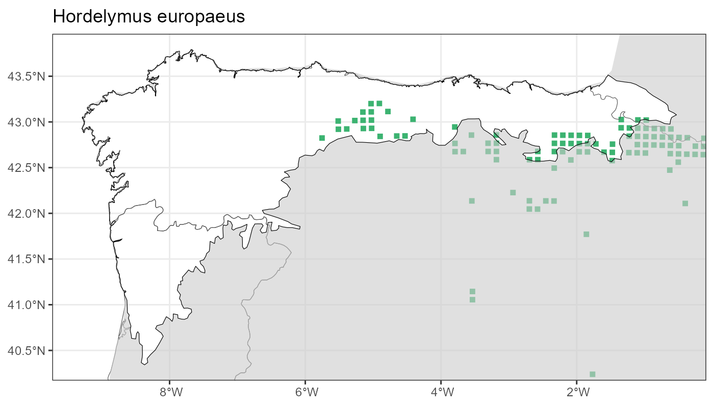 Localities (10 x 10 km) where the species has been recorded in the context of the study area. The complete distribution of the species in the Iberian Peninsula can be found in AFLIBER.