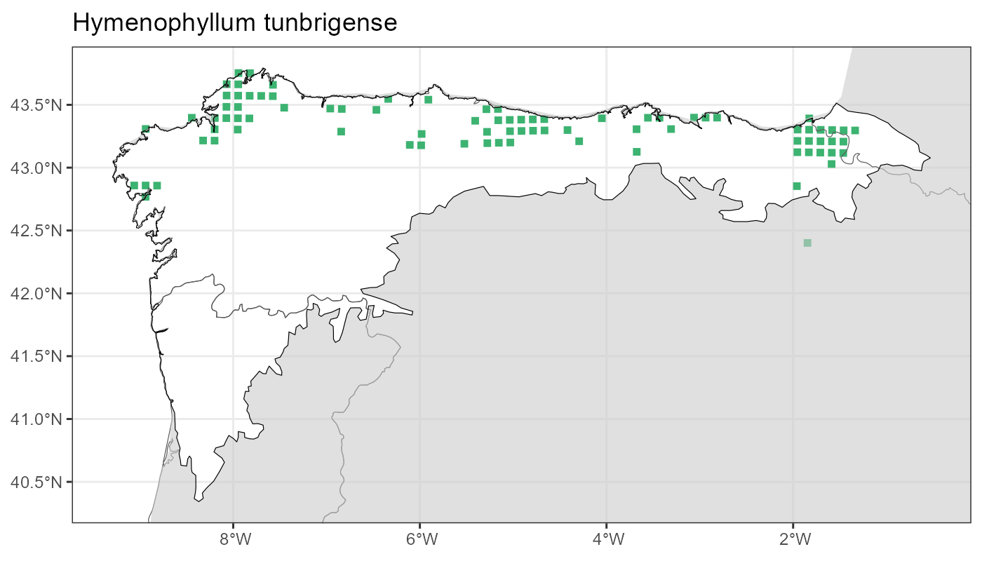 Localities (10 x 10 km) where the species has been recorded in the context of the study area. The complete distribution of the species in the Iberian Peninsula can be found in AFLIBER.