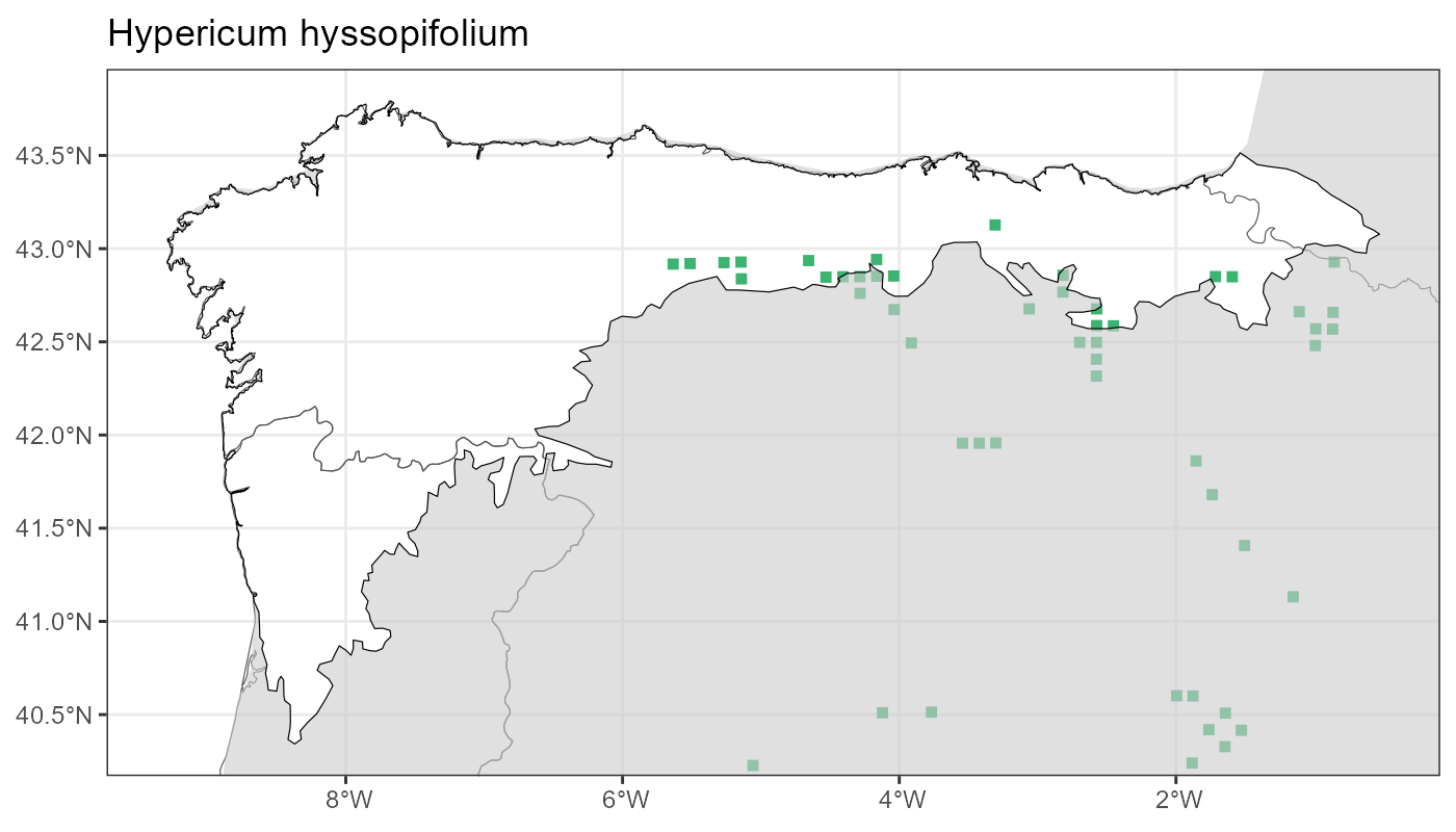 Localities (10 x 10 km) where the species has been recorded in the context of the study area. The complete distribution of the species in the Iberian Peninsula can be found in AFLIBER.