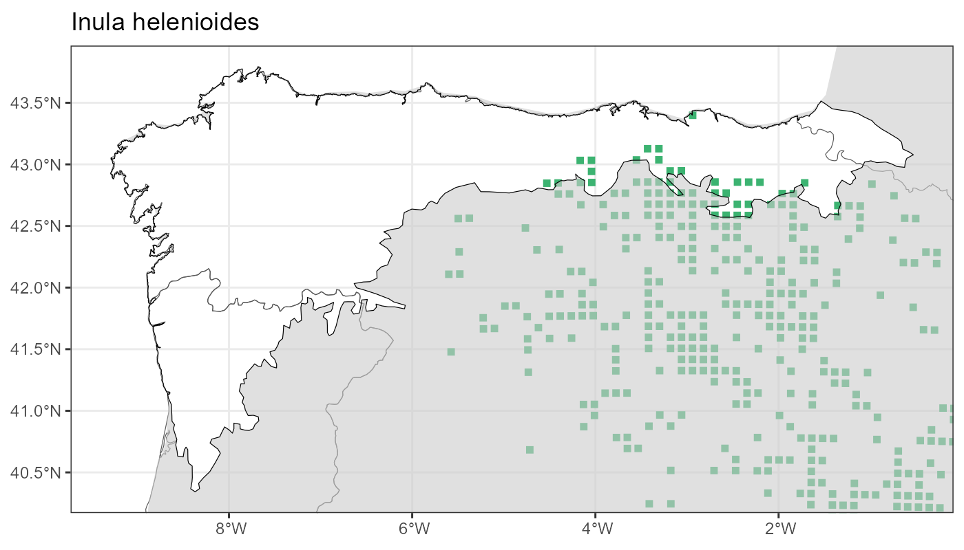 Localities (10 x 10 km) where the species has been recorded in the context of the study area. The complete distribution of the species in the Iberian Peninsula can be found in AFLIBER.