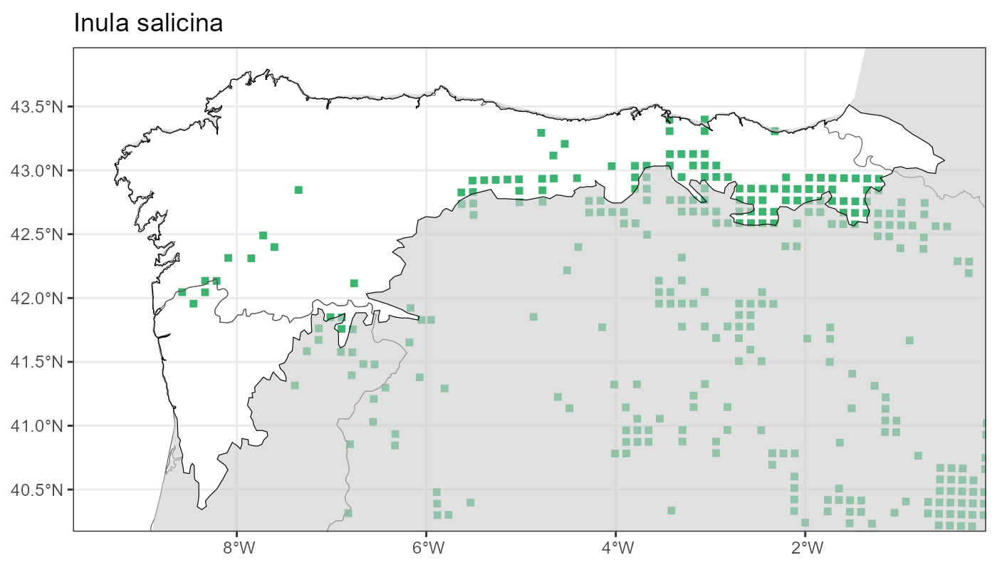 Localities (10 x 10 km) where the species has been recorded in the context of the study area. The complete distribution of the species in the Iberian Peninsula can be found in AFLIBER.