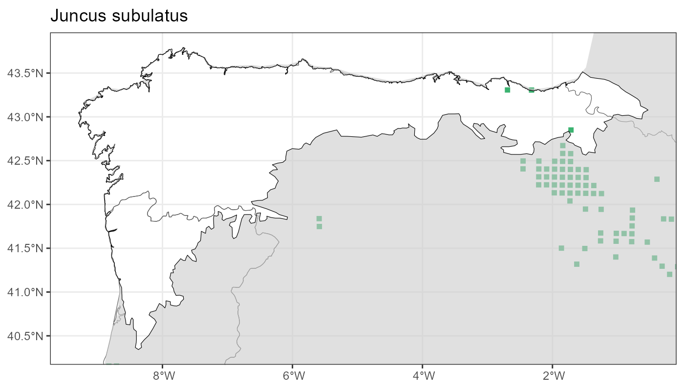 Localities (10 x 10 km) where the species has been recorded in the context of the study area. The complete distribution of the species in the Iberian Peninsula can be found in AFLIBER.