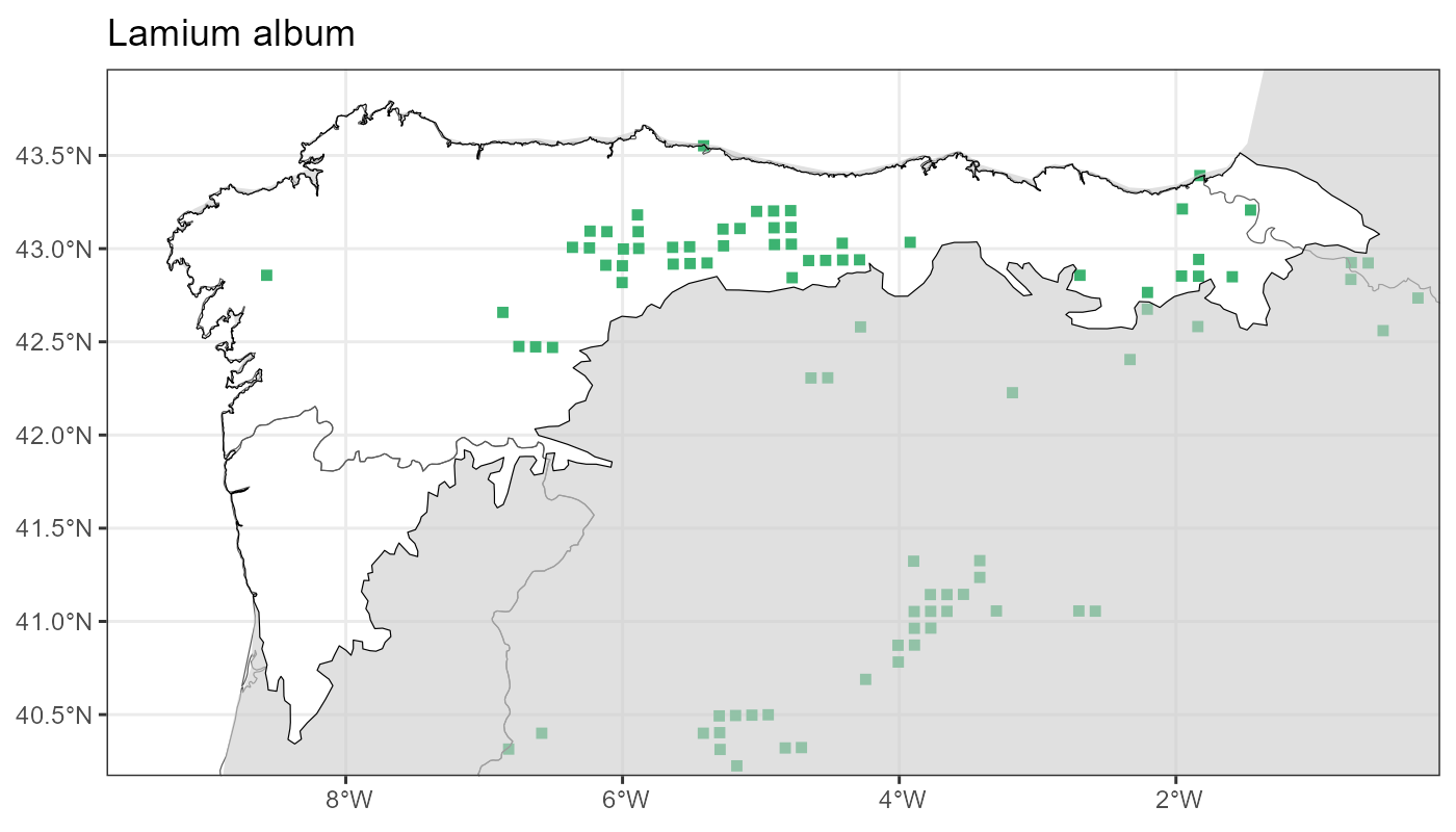 Localities (10 x 10 km) where the species has been recorded in the context of the study area. The complete distribution of the species in the Iberian Peninsula can be found in AFLIBER.