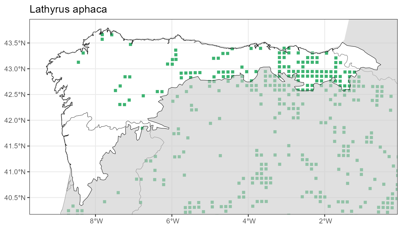 Localities (10 x 10 km) where the species has been recorded in the context of the study area. The complete distribution of the species in the Iberian Peninsula can be found in AFLIBER.