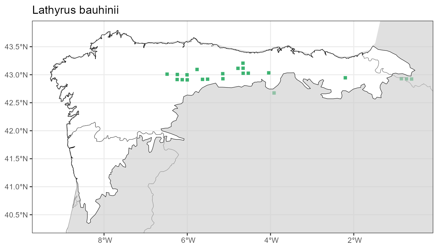 Localities (10 x 10 km) where the species has been recorded in the context of the study area. The complete distribution of the species in the Iberian Peninsula can be found in AFLIBER.