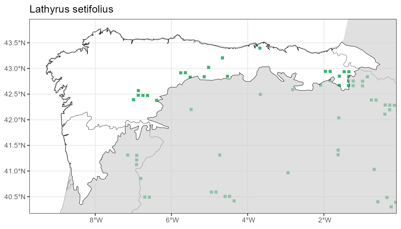 Localities (10 x 10 km) where the species has been recorded in the context of the study area. The complete distribution of the species in the Iberian Peninsula can be found in AFLIBER.