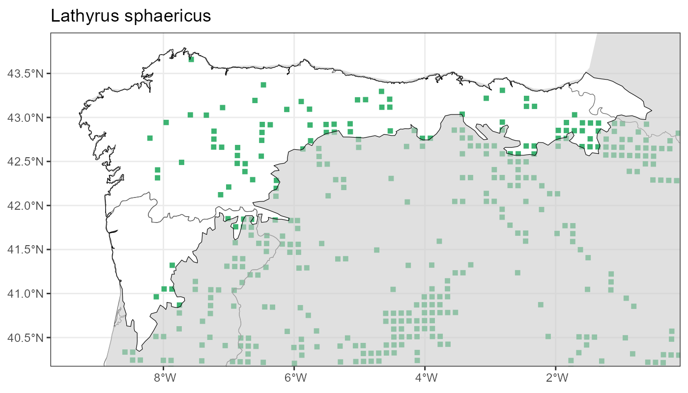 Localities (10 x 10 km) where the species has been recorded in the context of the study area. The complete distribution of the species in the Iberian Peninsula can be found in AFLIBER.