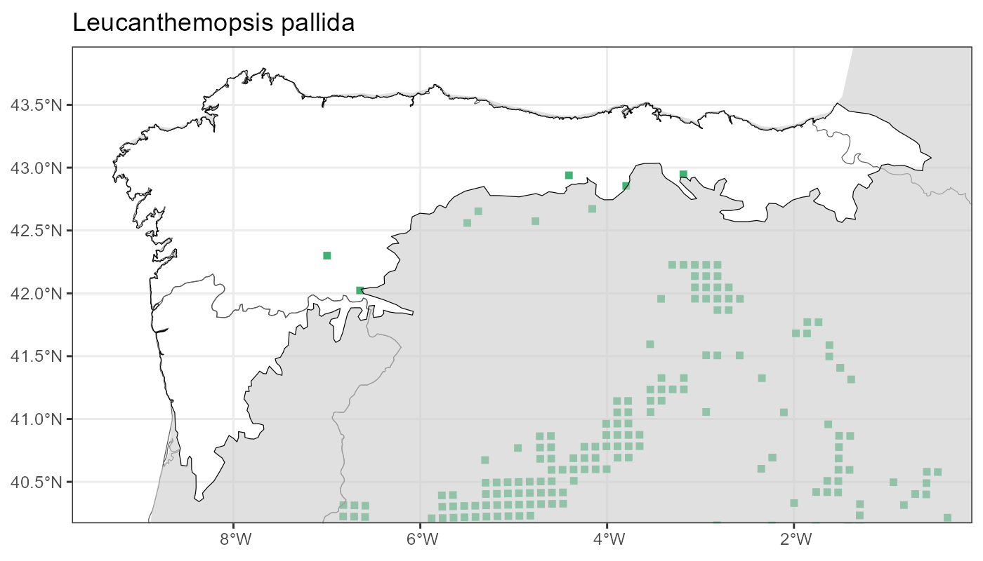 Localities (10 x 10 km) where the species has been recorded in the context of the study area. The complete distribution of the species in the Iberian Peninsula can be found in AFLIBER.