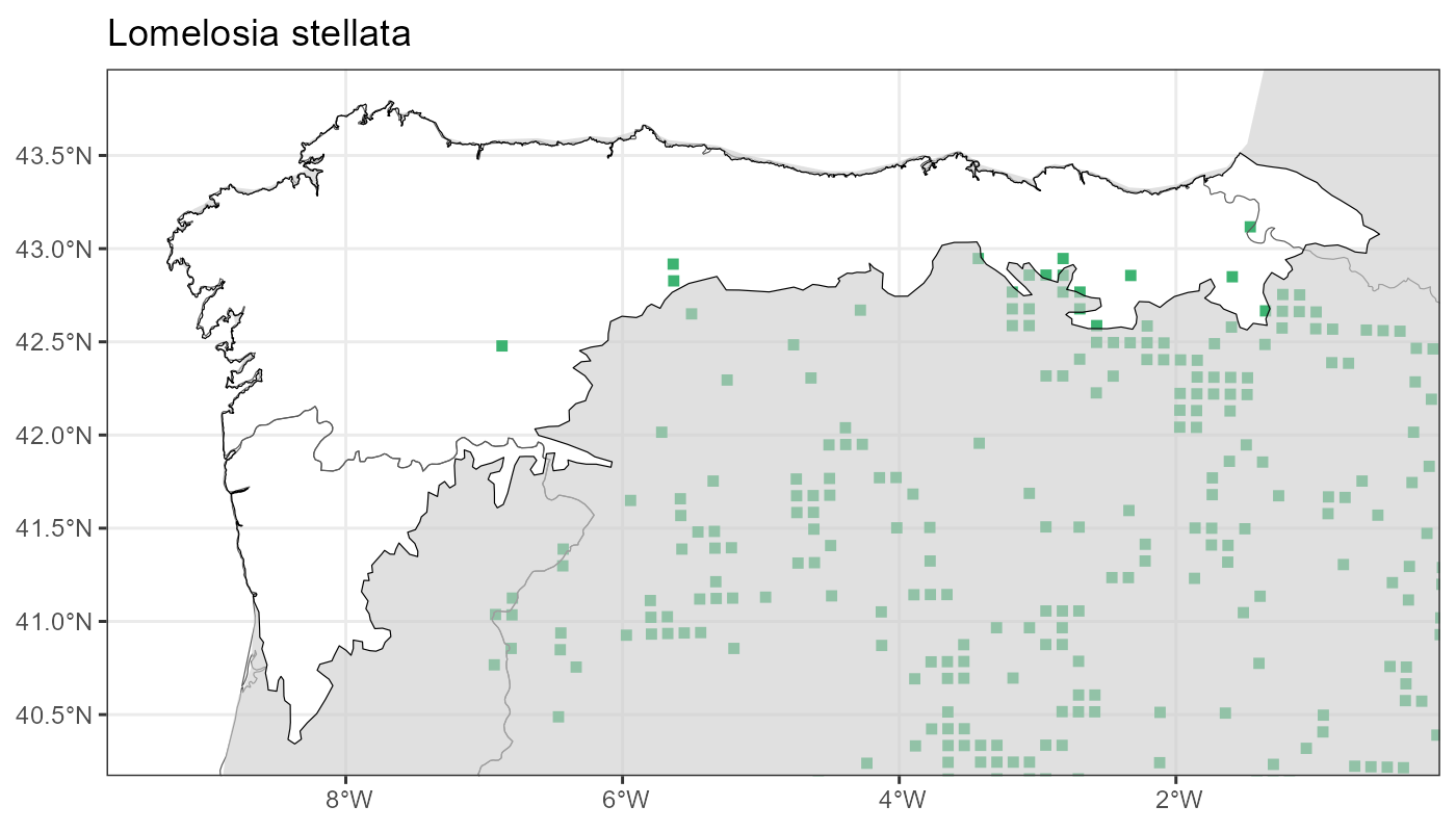 Localities (10 x 10 km) where the species has been recorded in the context of the study area. The complete distribution of the species in the Iberian Peninsula can be found in AFLIBER.