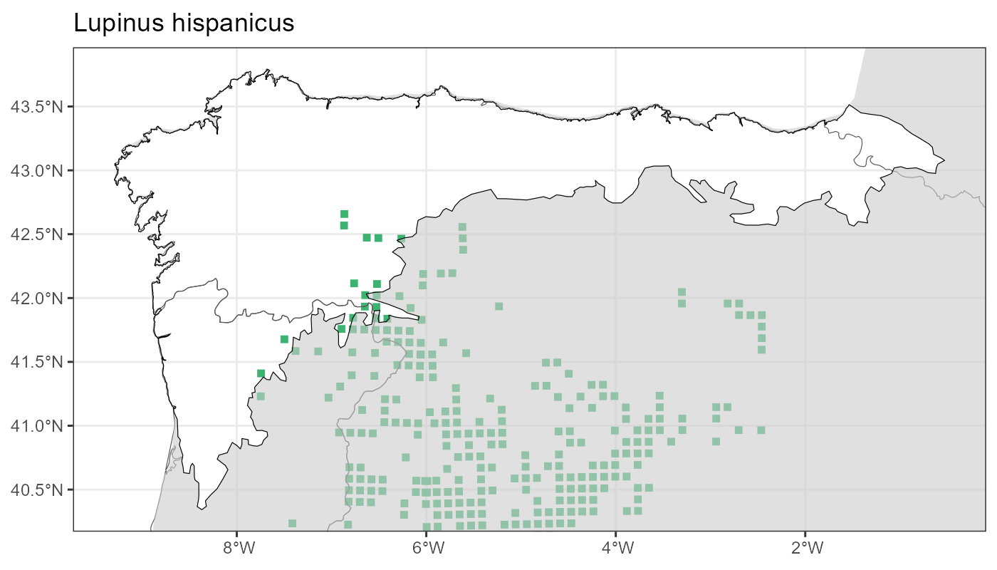 Localities (10 x 10 km) where the species has been recorded in the context of the study area. The complete distribution of the species in the Iberian Peninsula can be found in AFLIBER.