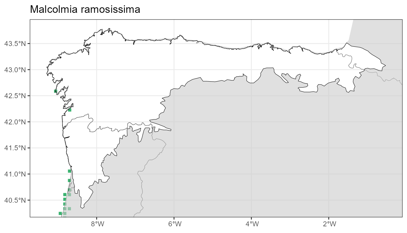 Localities (10 x 10 km) where the species has been recorded in the context of the study area. The complete distribution of the species in the Iberian Peninsula can be found in AFLIBER.