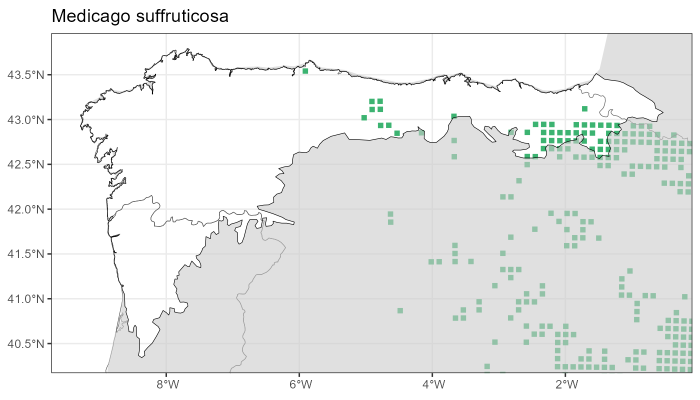 Localities (10 x 10 km) where the species has been recorded in the context of the study area. The complete distribution of the species in the Iberian Peninsula can be found in AFLIBER.