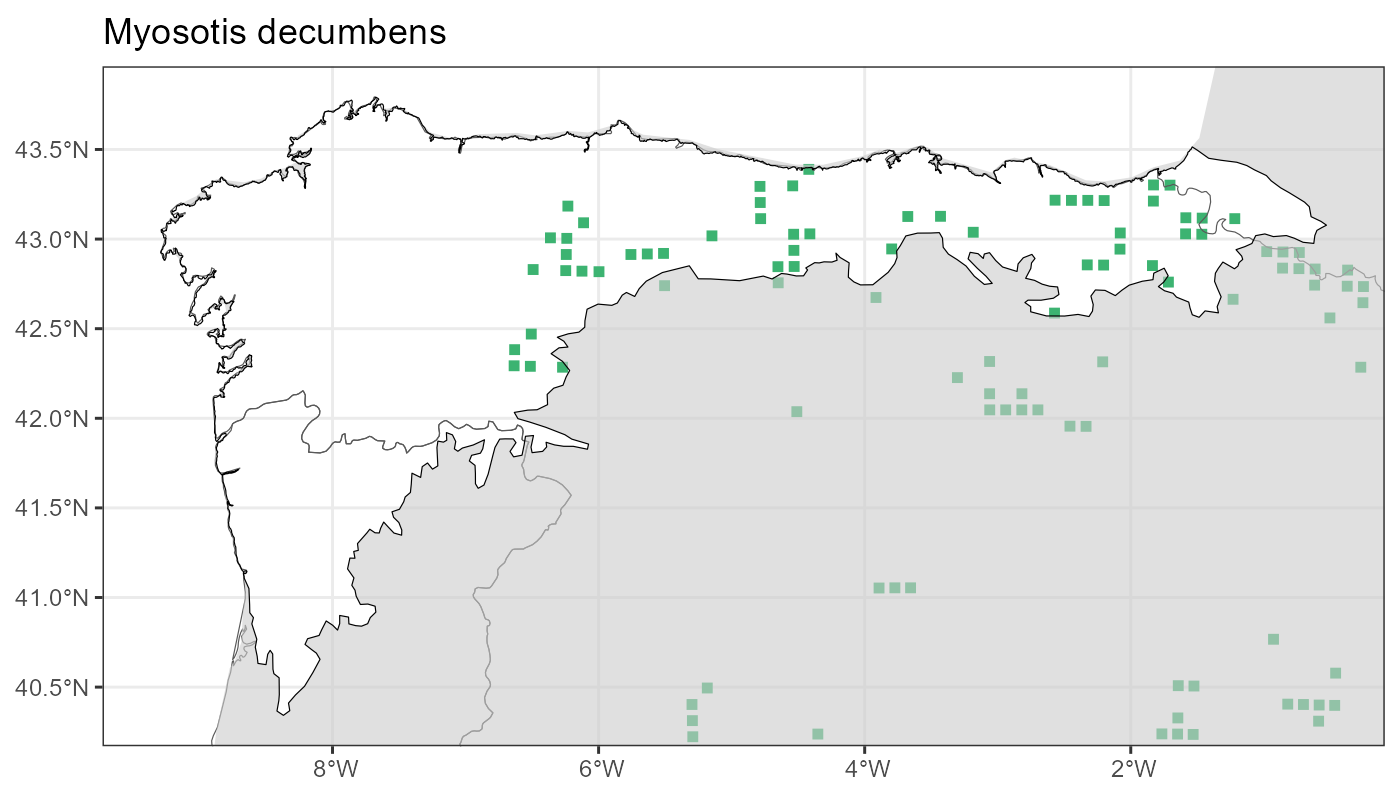 Localities (10 x 10 km) where the species has been recorded in the context of the study area. The complete distribution of the species in the Iberian Peninsula can be found in AFLIBER.