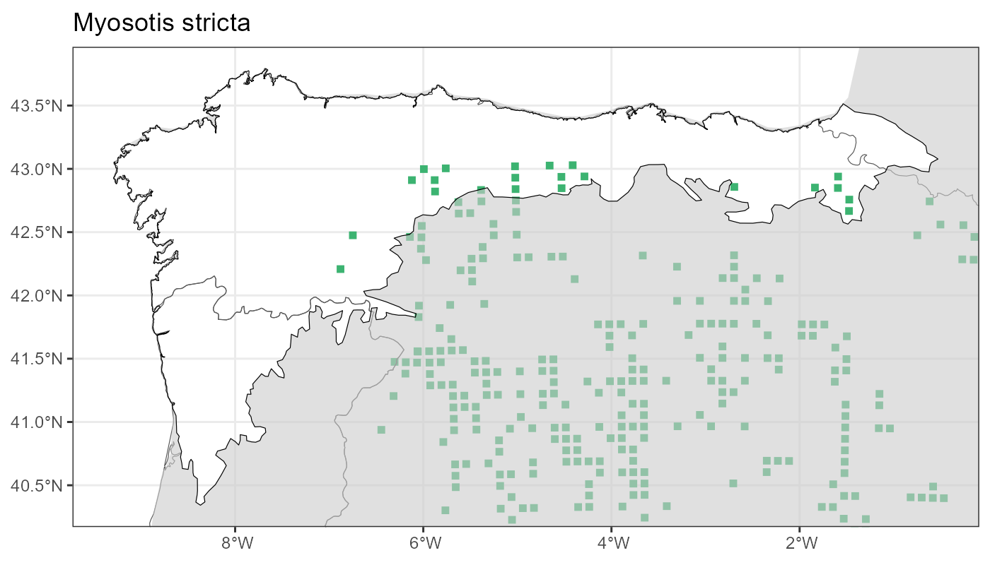 Localities (10 x 10 km) where the species has been recorded in the context of the study area. The complete distribution of the species in the Iberian Peninsula can be found in AFLIBER.