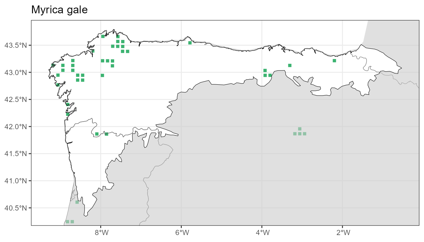 Localities (10 x 10 km) where the species has been recorded in the context of the study area. The complete distribution of the species in the Iberian Peninsula can be found in AFLIBER.