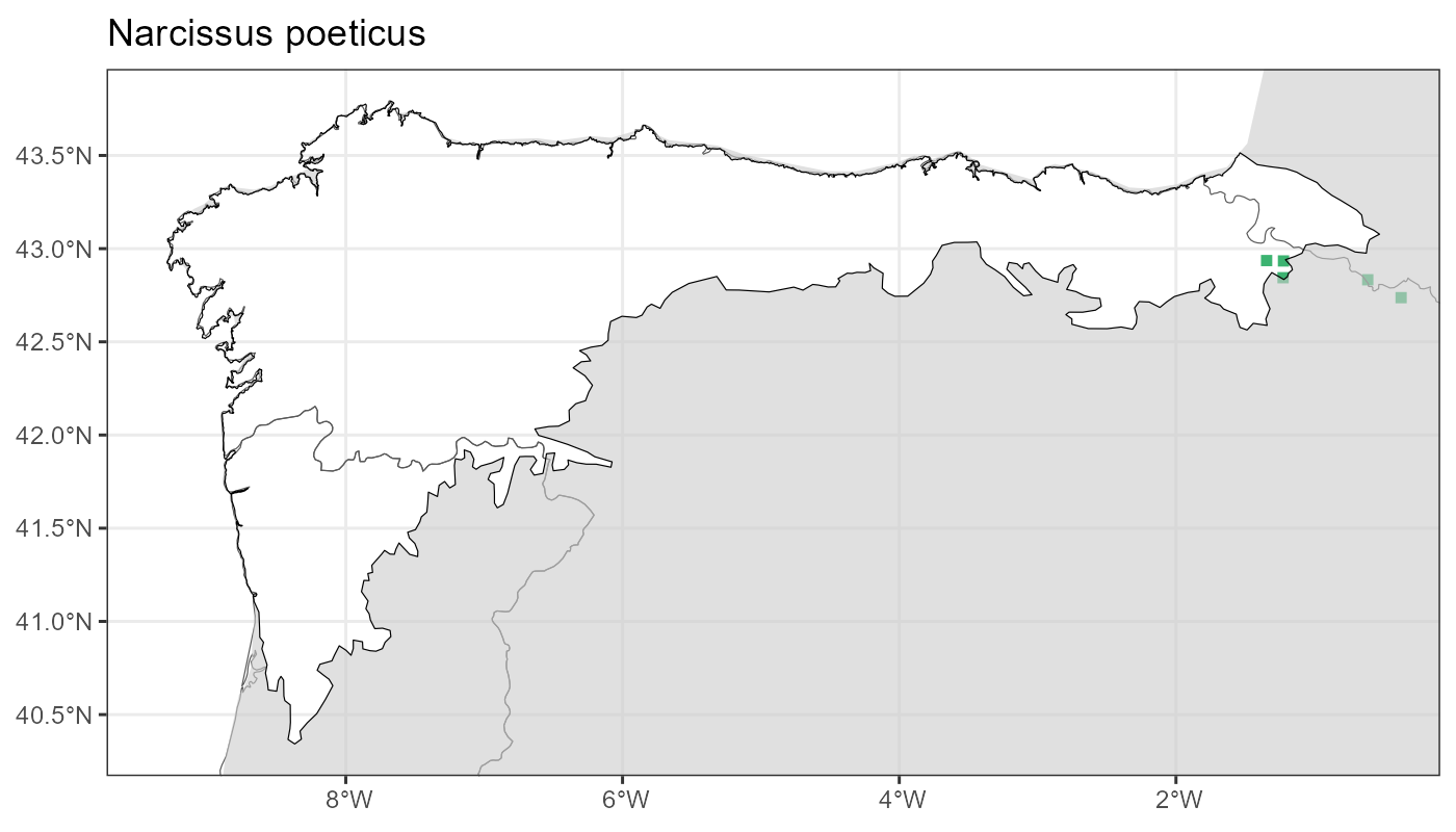 Localities (10 x 10 km) where the species has been recorded in the context of the study area. The complete distribution of the species in the Iberian Peninsula can be found in AFLIBER.