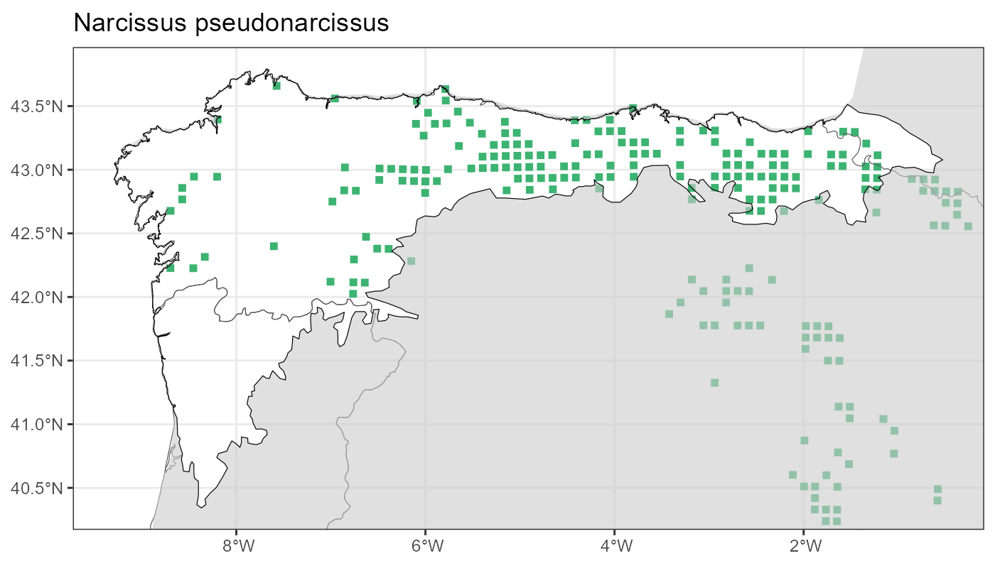 Localities (10 x 10 km) where the species has been recorded in the context of the study area. The complete distribution of the species in the Iberian Peninsula can be found in AFLIBER.