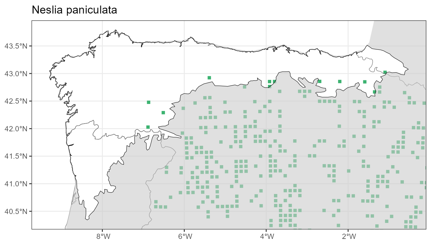 Localities (10 x 10 km) where the species has been recorded in the context of the study area. The complete distribution of the species in the Iberian Peninsula can be found in AFLIBER.
