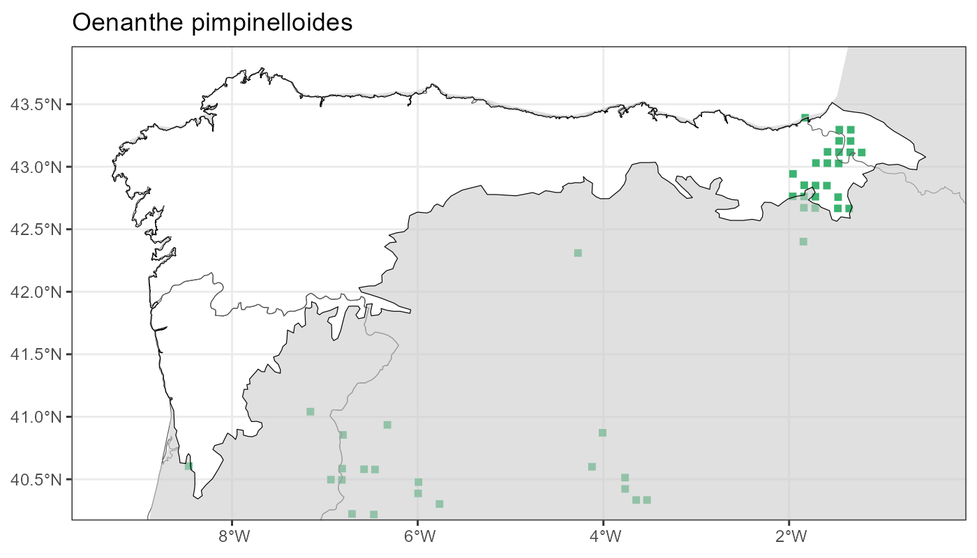 Localities (10 x 10 km) where the species has been recorded in the context of the study area. The complete distribution of the species in the Iberian Peninsula can be found in AFLIBER.