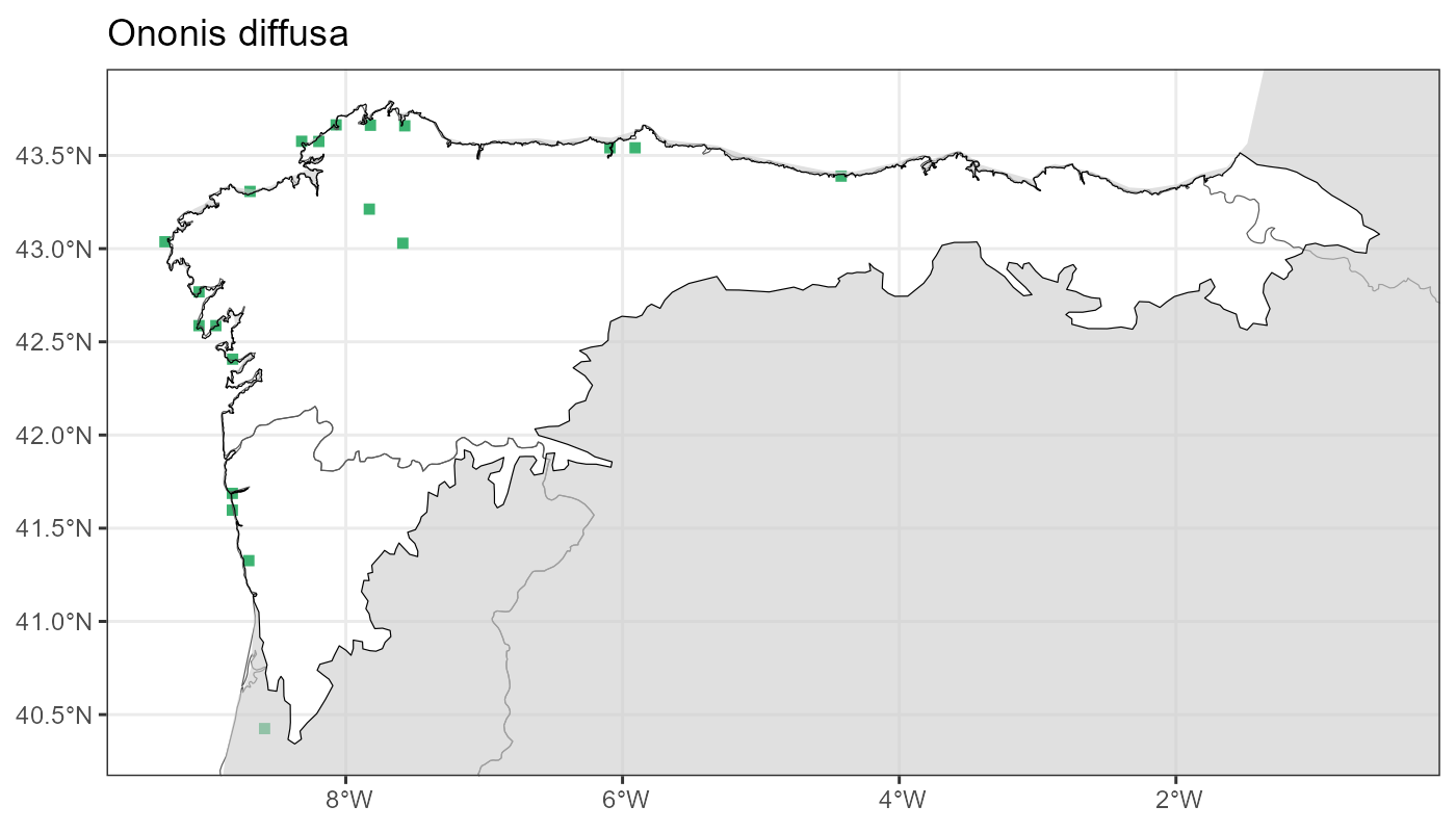 Localities (10 x 10 km) where the species has been recorded in the context of the study area. The complete distribution of the species in the Iberian Peninsula can be found in AFLIBER.
