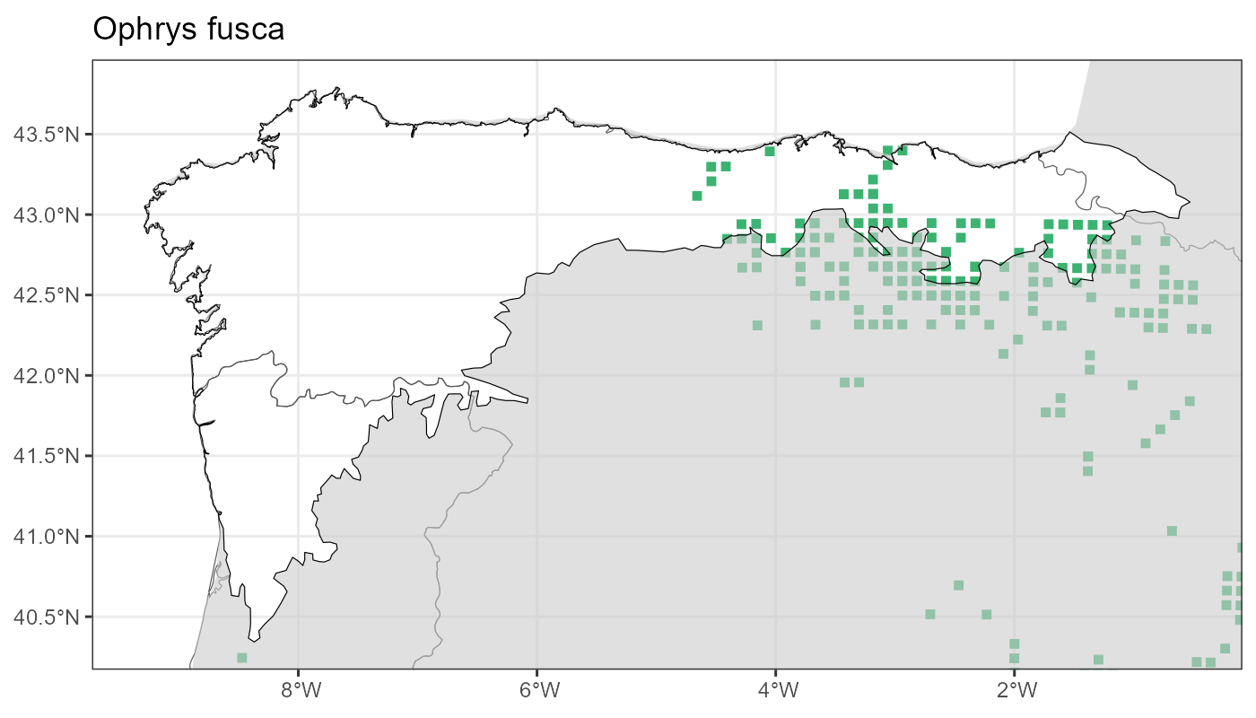 Localities (10 x 10 km) where the species has been recorded in the context of the study area. The complete distribution of the species in the Iberian Peninsula can be found in AFLIBER.