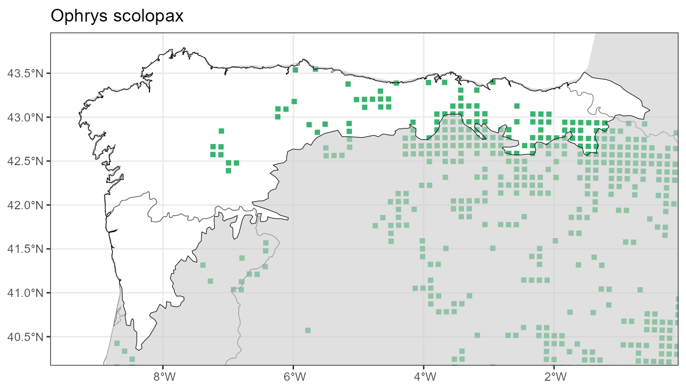 Localities (10 x 10 km) where the species has been recorded in the context of the study area. The complete distribution of the species in the Iberian Peninsula can be found in AFLIBER.