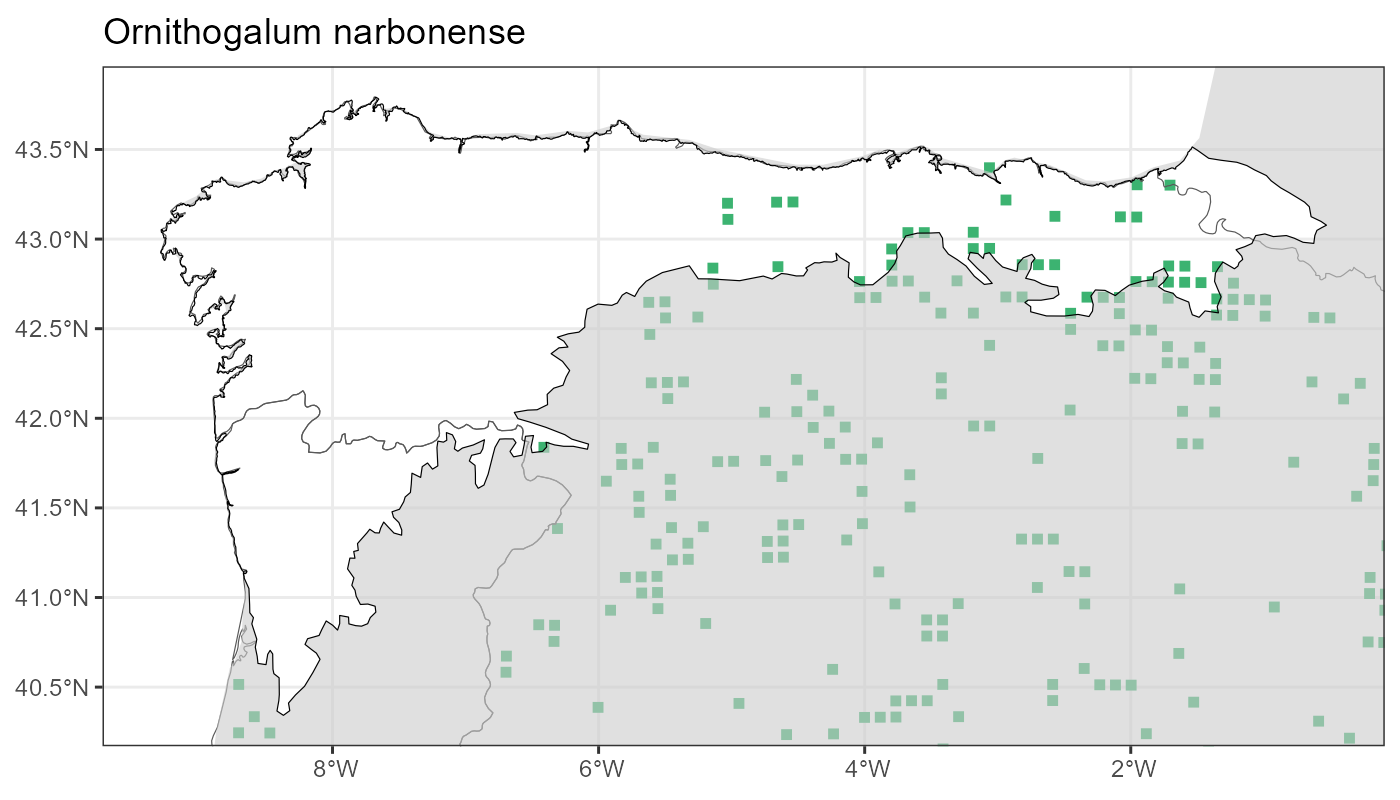 Localities (10 x 10 km) where the species has been recorded in the context of the study area. The complete distribution of the species in the Iberian Peninsula can be found in AFLIBER.