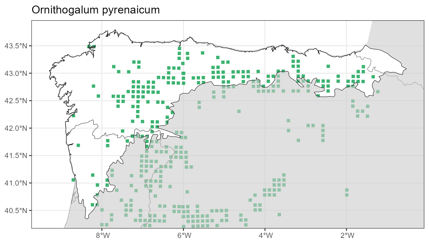 Localities (10 x 10 km) where the species has been recorded in the context of the study area. The complete distribution of the species in the Iberian Peninsula can be found in AFLIBER.
