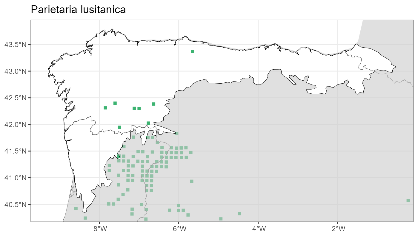Localities (10 x 10 km) where the species has been recorded in the context of the study area. The complete distribution of the species in the Iberian Peninsula can be found in AFLIBER.