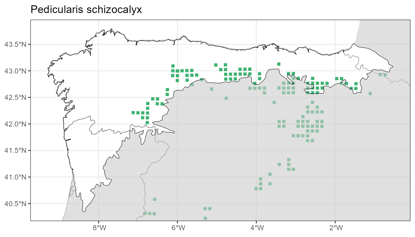 Localities (10 x 10 km) where the species has been recorded in the context of the study area. The complete distribution of the species in the Iberian Peninsula can be found in AFLIBER.