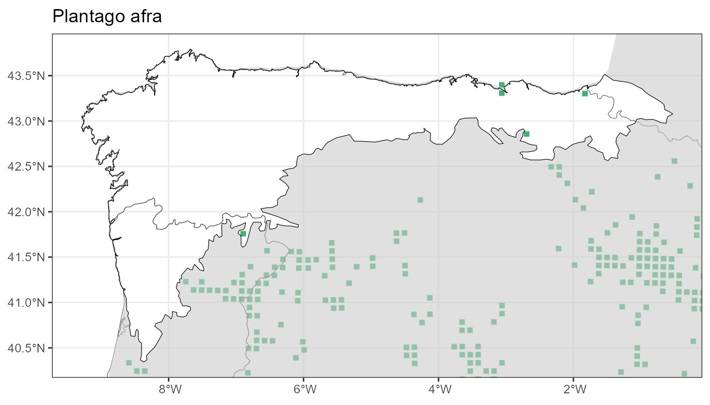 Localities (10 x 10 km) where the species has been recorded in the context of the study area. The complete distribution of the species in the Iberian Peninsula can be found in AFLIBER.