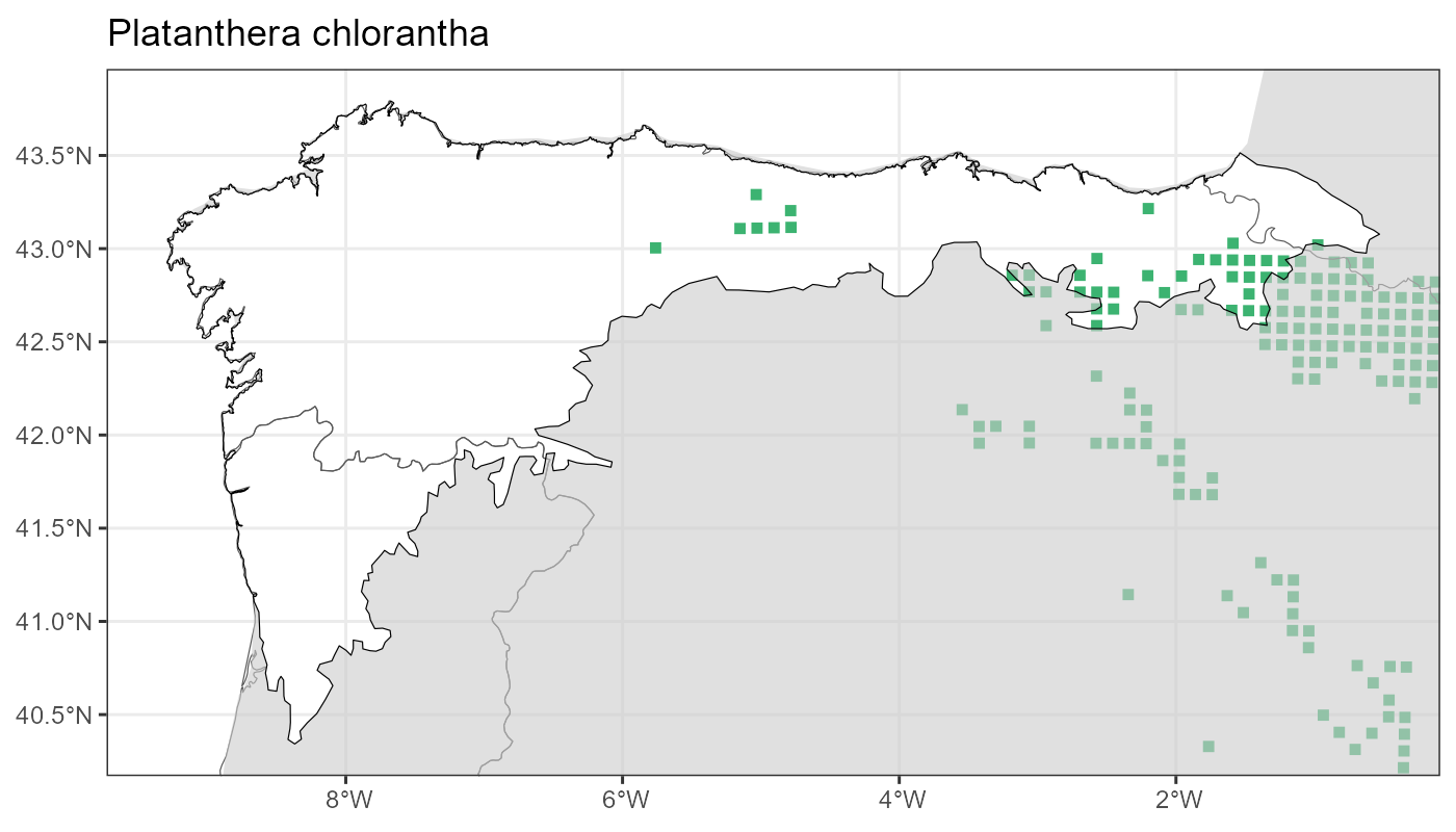 Localities (10 x 10 km) where the species has been recorded in the context of the study area. The complete distribution of the species in the Iberian Peninsula can be found in AFLIBER.