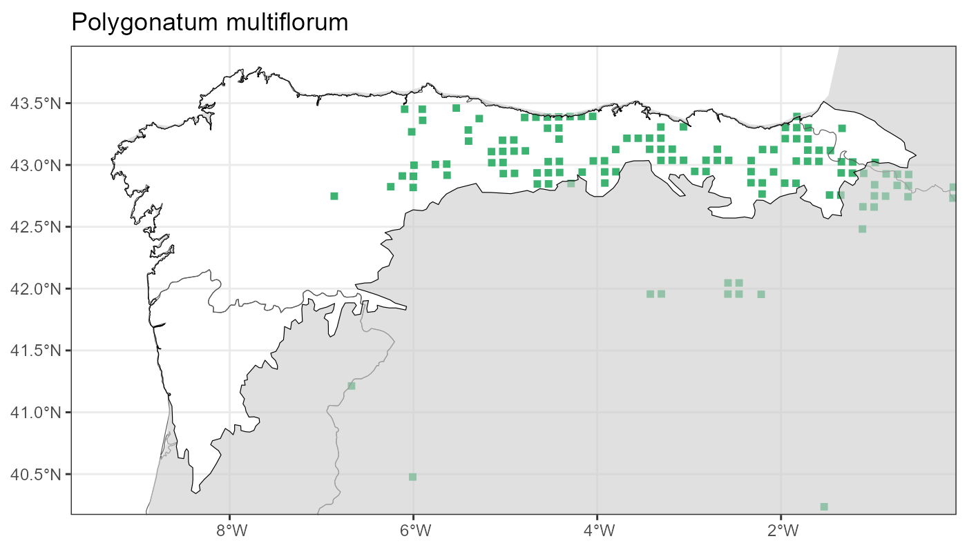 Localities (10 x 10 km) where the species has been recorded in the context of the study area. The complete distribution of the species in the Iberian Peninsula can be found in AFLIBER.