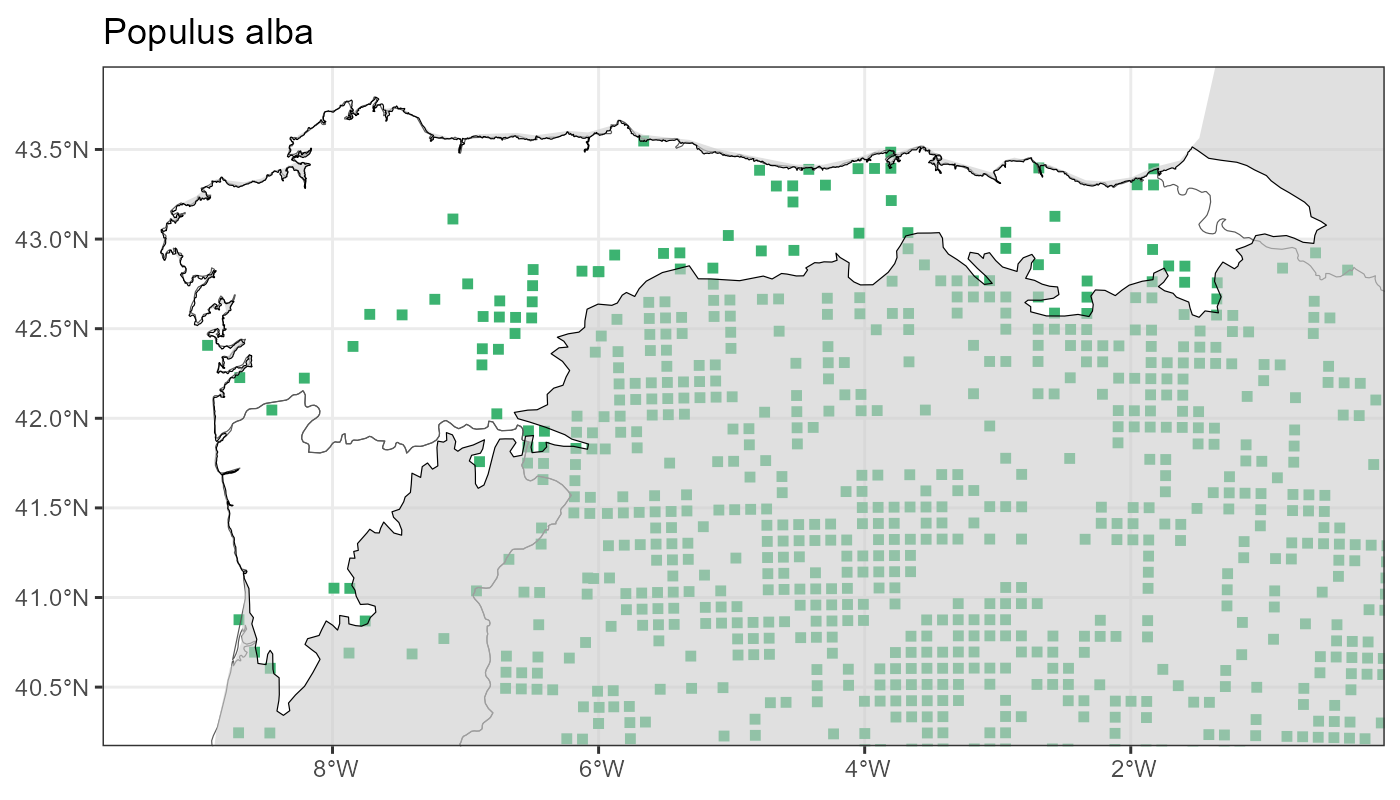 Localities (10 x 10 km) where the species has been recorded in the context of the study area. The complete distribution of the species in the Iberian Peninsula can be found in AFLIBER.
