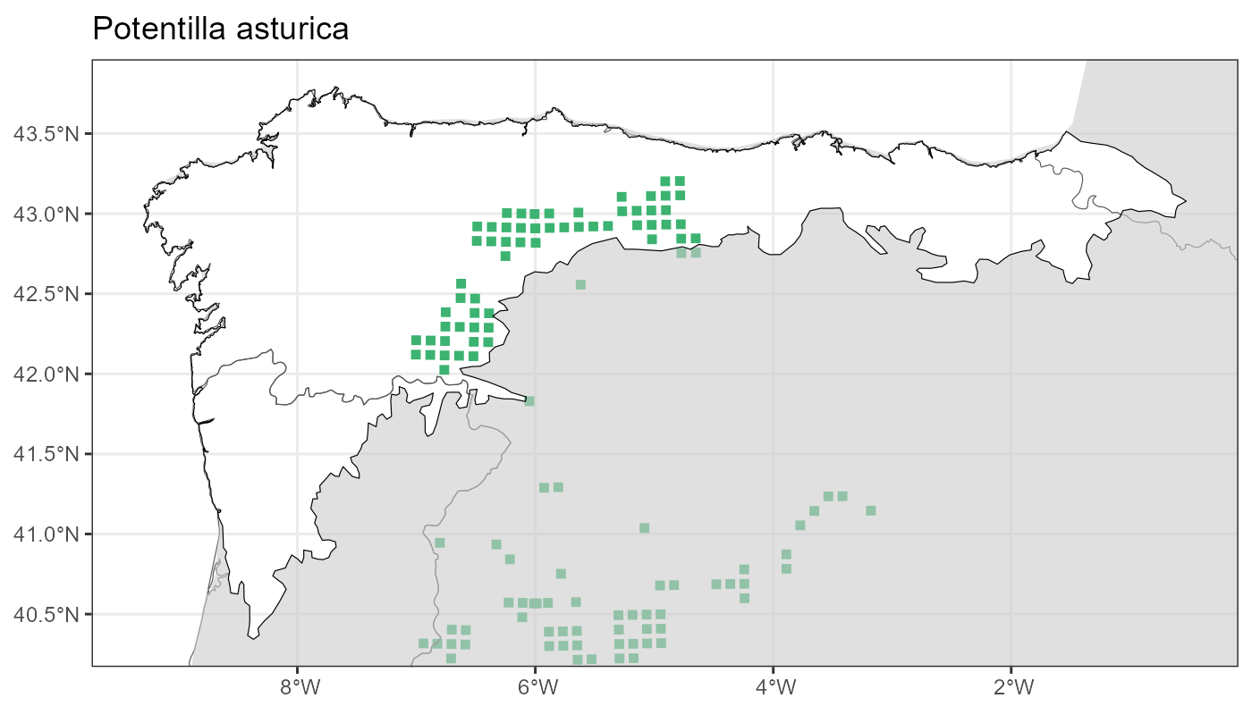 Localities (10 x 10 km) where the species has been recorded in the context of the study area. The complete distribution of the species in the Iberian Peninsula can be found in AFLIBER.