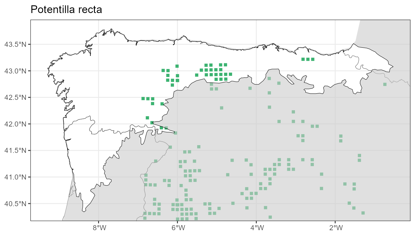 Localities (10 x 10 km) where the species has been recorded in the context of the study area. The complete distribution of the species in the Iberian Peninsula can be found in AFLIBER.