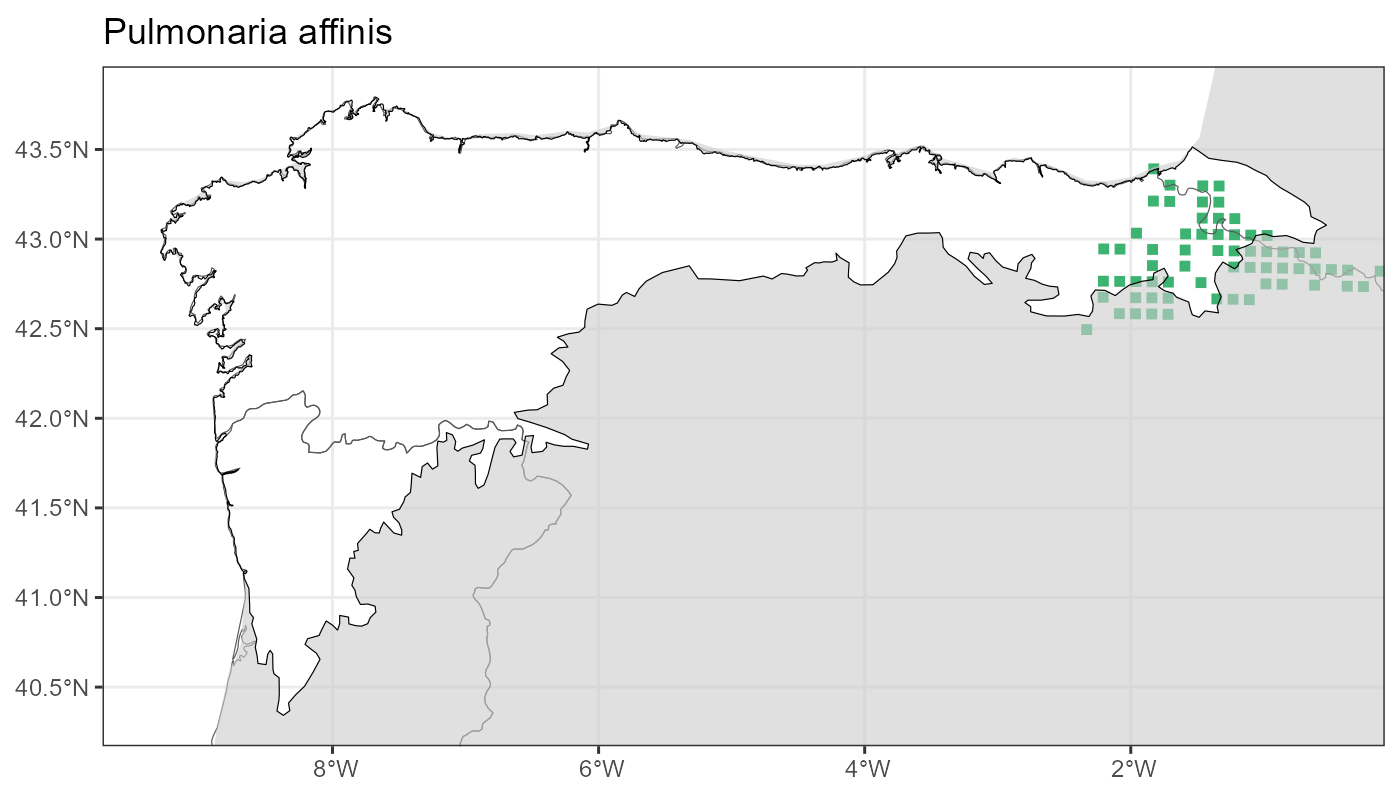 Localities (10 x 10 km) where the species has been recorded in the context of the study area. The complete distribution of the species in the Iberian Peninsula can be found in AFLIBER.