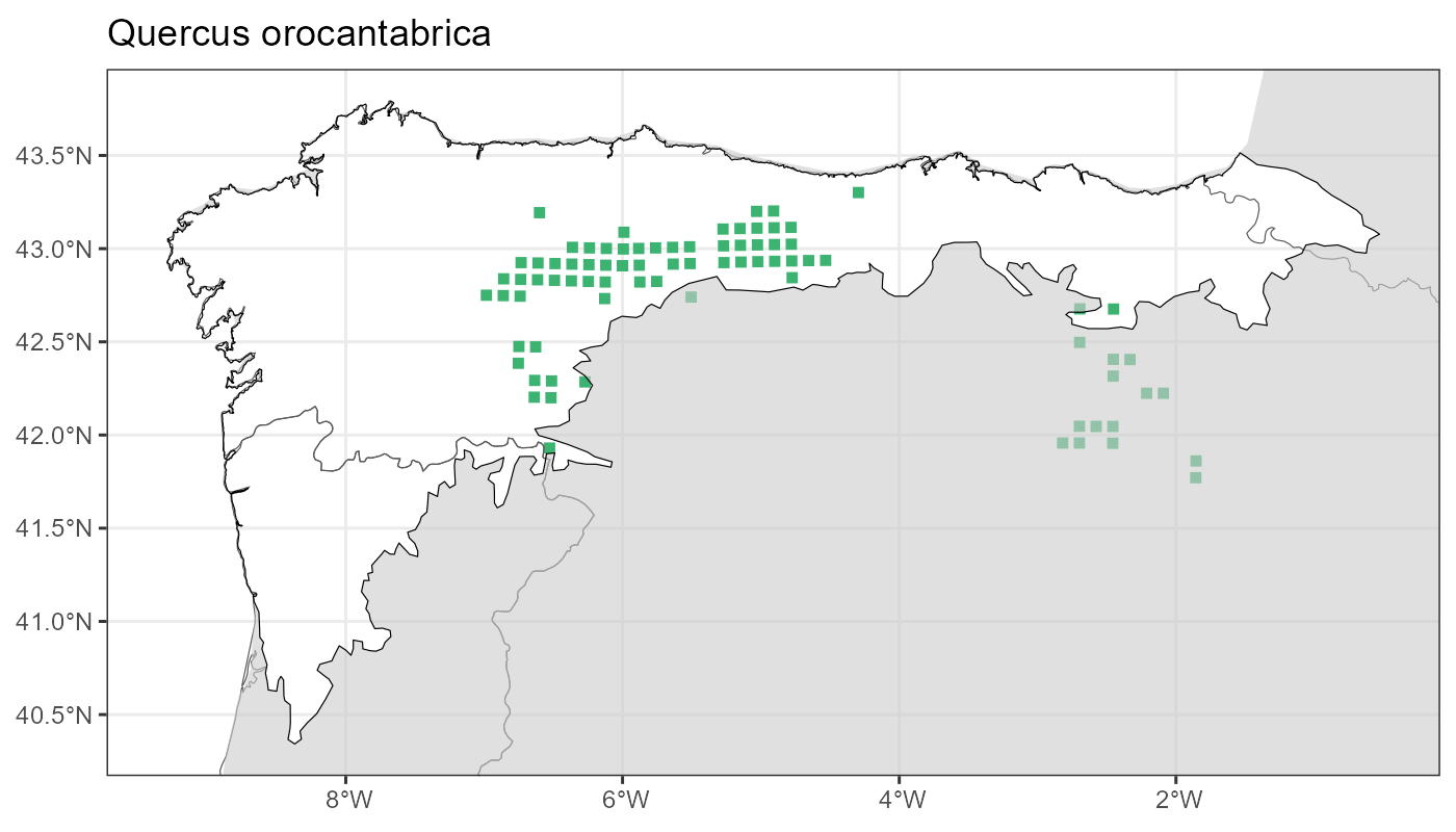 Localities (10 x 10 km) where the species has been recorded in the context of the study area. The complete distribution of the species in the Iberian Peninsula can be found in AFLIBER.