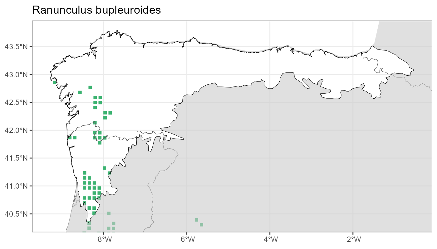 Localities (10 x 10 km) where the species has been recorded in the context of the study area. The complete distribution of the species in the Iberian Peninsula can be found in AFLIBER.