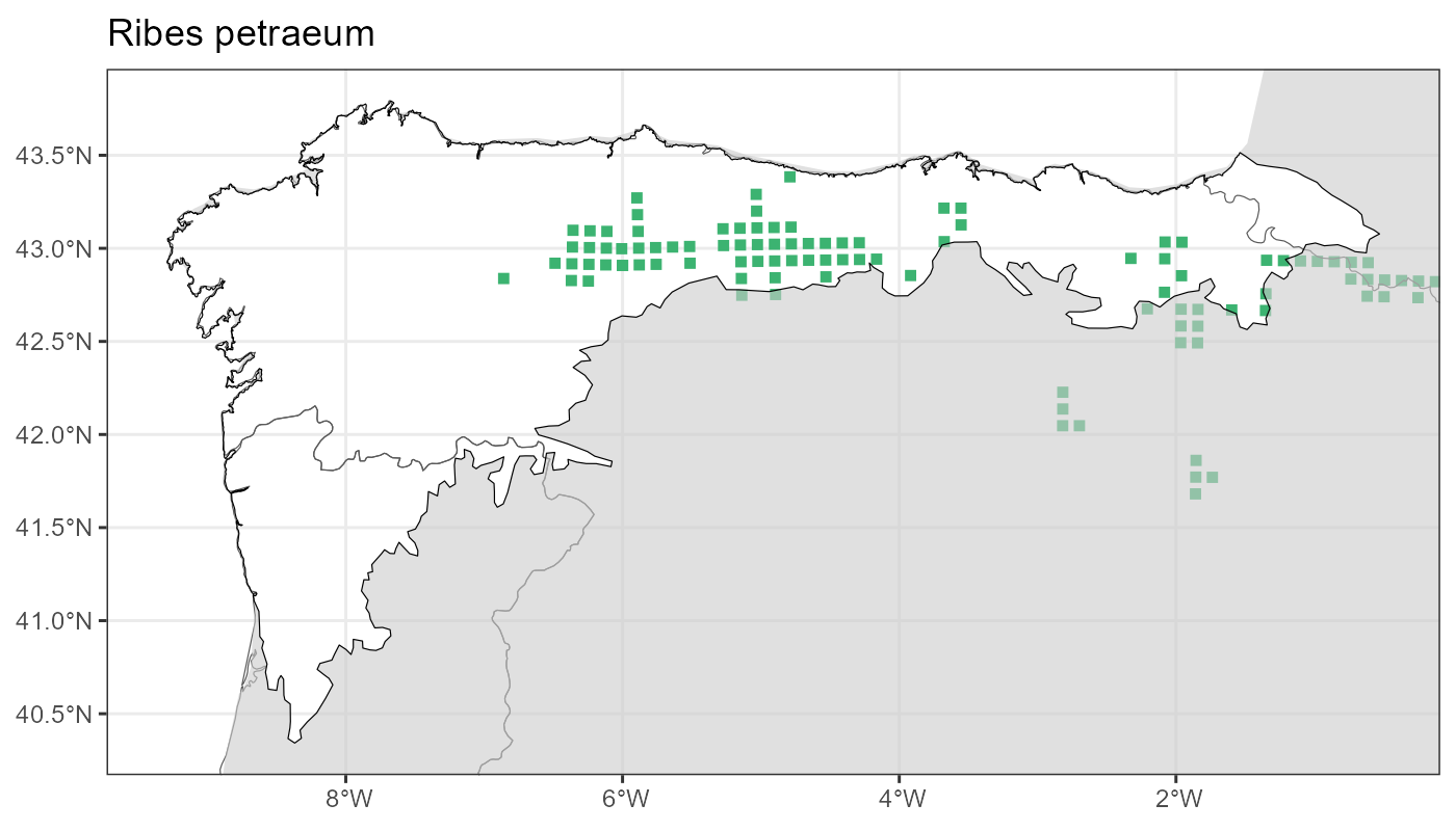 Localities (10 x 10 km) where the species has been recorded in the context of the study area. The complete distribution of the species in the Iberian Peninsula can be found in AFLIBER.