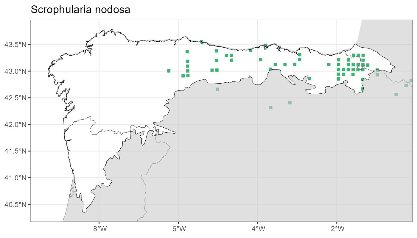 Localities (10 x 10 km) where the species has been recorded in the context of the study area. The complete distribution of the species in the Iberian Peninsula can be found in AFLIBER.