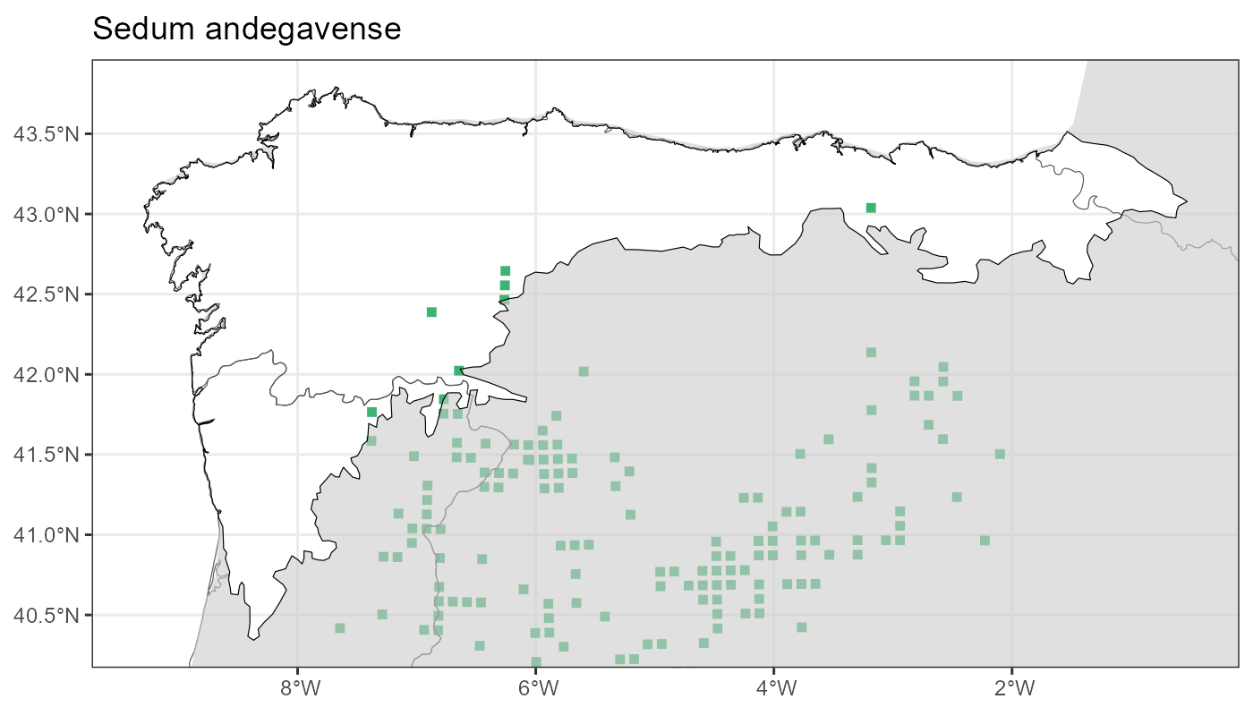 Localities (10 x 10 km) where the species has been recorded in the context of the study area. The complete distribution of the species in the Iberian Peninsula can be found in AFLIBER.